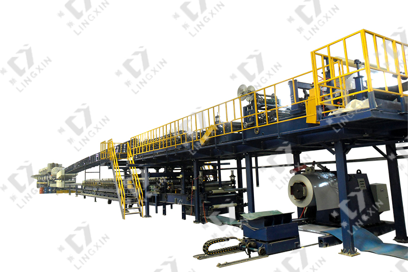 彩鋼瓦(wa)生產(chan)(chan)線具(ju)有(you)自動(dong)化(hua)程度高,操作簡易,運行穩定等特點(dian),生產(chan)(chan)的(de)產(chan)(chan)品表面平整,接口(kou)縫隙(xi)精密美觀等優勢(shi)。能滿足芯材為聚氨酯的(de)復合(he)夾芯板(ban)連續(xu)生產(chan)(chan),即液態(tai)原料連續(xu)噴射到壓制成型(xing)的(de)上下面板(ban)間,在雙履帶發泡(pao)成型(xing)機中反應、發泡(pao)、固化(hua)、成形。