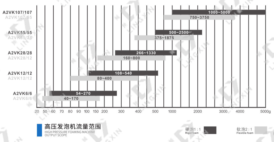 機頭:采用自清潔L型(xing)混合(he)頭,針型(xing)可調噴(pen)嘴,V型(xing)布置噴(pen)射口,高壓碰撞混合(he)原理(li),保證組份充分混合(he)。