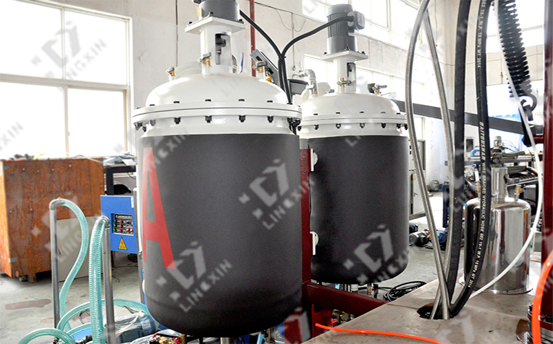 雙機(ji)(ji)頭(tou)低(di)壓發(fa)(fa)泡機(ji)(ji)是將(jiang)液態(tai)的多元醇與異氰酸酯兩(liang)組份(fen)原料分別(bie)儲(chu)存在兩(liang)個儲(chu)料罐中,通(tong)過(guo)兩(liang)臺旋轉式高(gao)精(jing)度齒輪(lun)計量泵送zhi混(hun)合(he)系(xi)統,在氣壓作(zuo)用(yong)下混(hun)合(he)頭(tou)開(kai)啟,兩(liang)組份(fen)被注入(ru)到(dao)(dao)小型(xing)混(hun)合(he)室中,經過(guo)攪拌葉高(gao)速攪拌而達到(dao)(dao)混(hun)合(he)效果,使之料液均勻(yun)噴出,形(xing)成所需產(chan)品(pin)。該設備是領新公(gong)司自主(zhu)開(kai)發(fa)(fa)的新產(chan)品(pin),聚氨酯發(fa)(fa)泡機(ji)(ji)具有重(zhong)復注入(ru)精(jing)度高(gao)、混(hun)料均勻(yun)、性能穩定、操作(zuo)簡(jian)便、生產(chan)效率高(gao)等特(te)點。兩(liang)個機(ji)(ji)頭(tou)可以切換或同時使用(yong)。